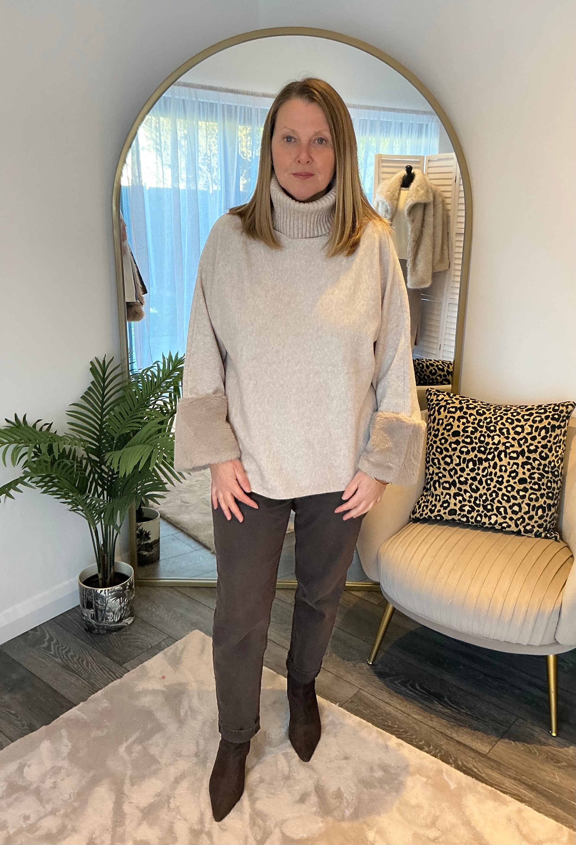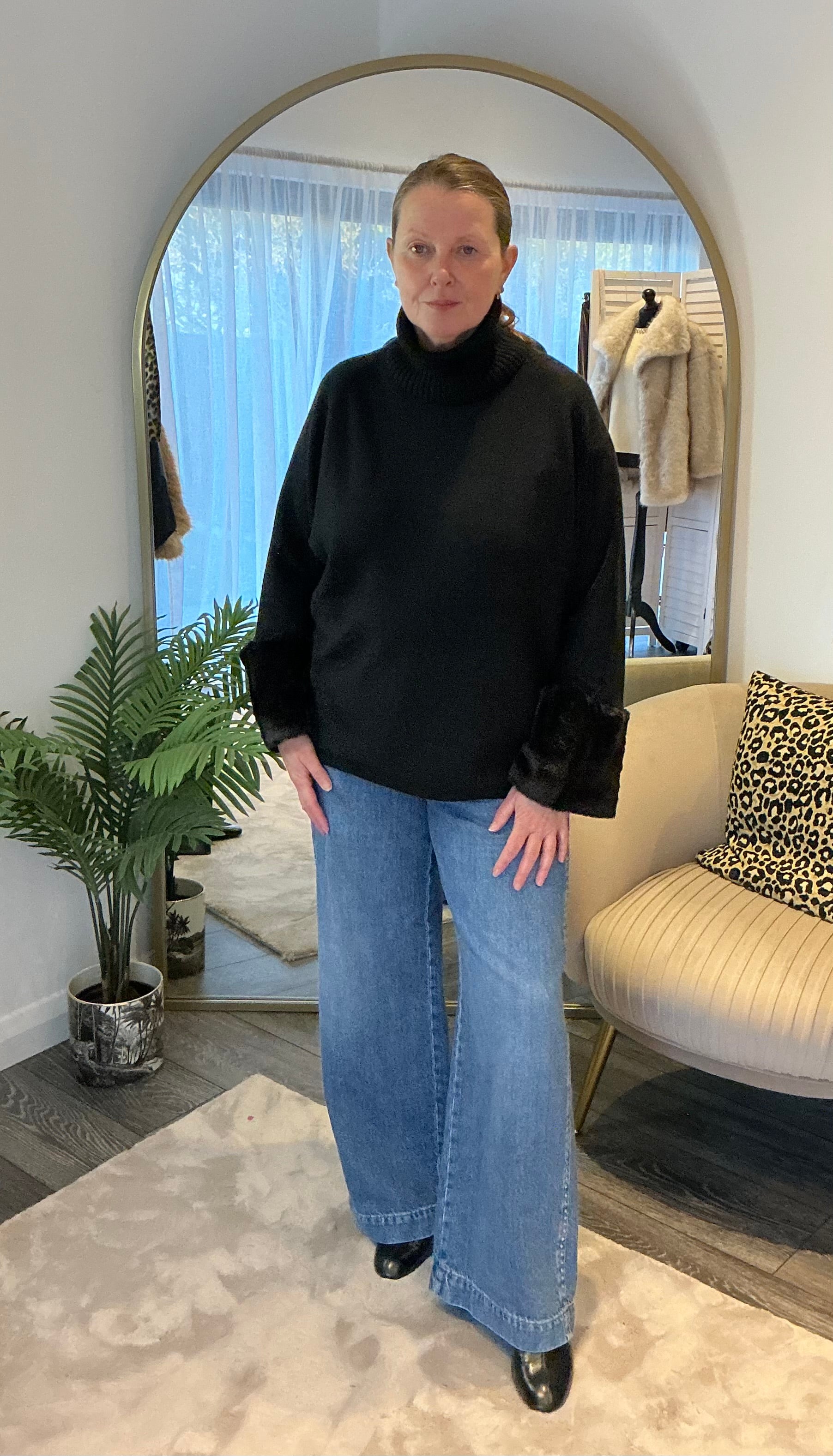 Super soft roll neck jumper with faux fur cuffs